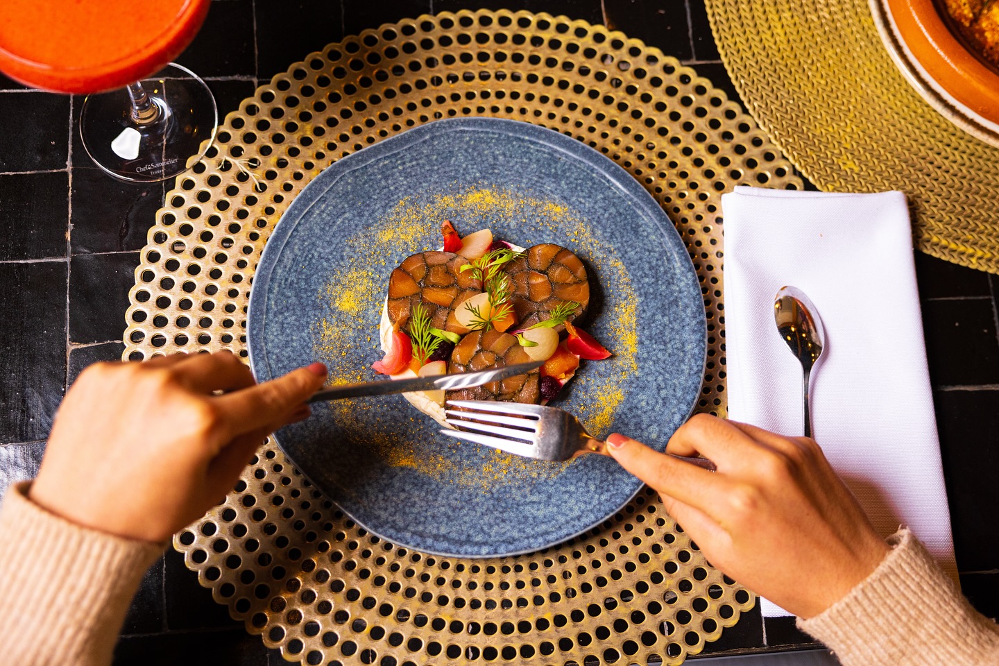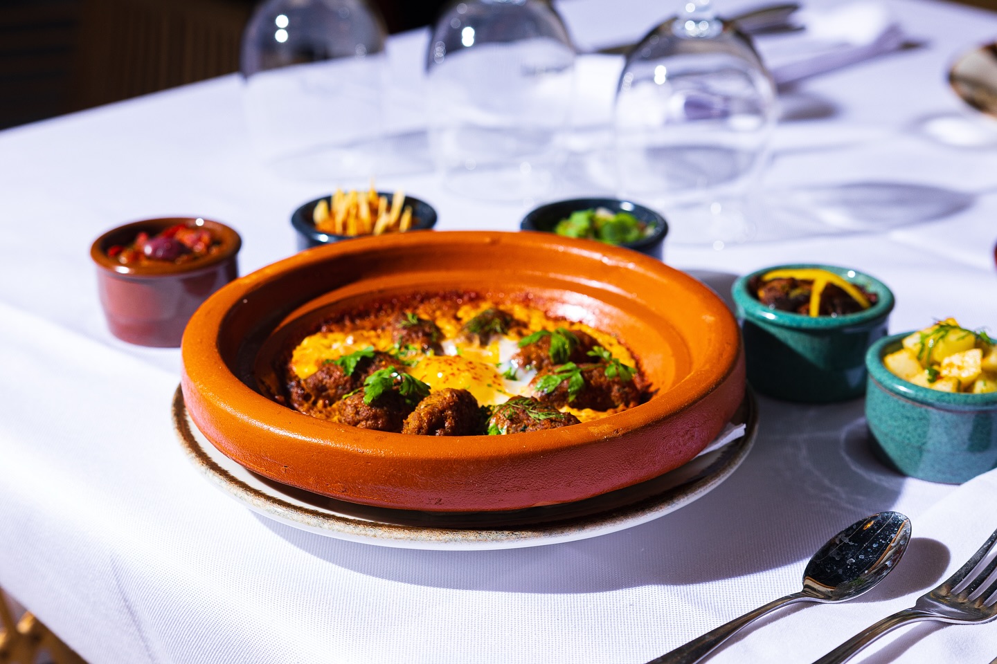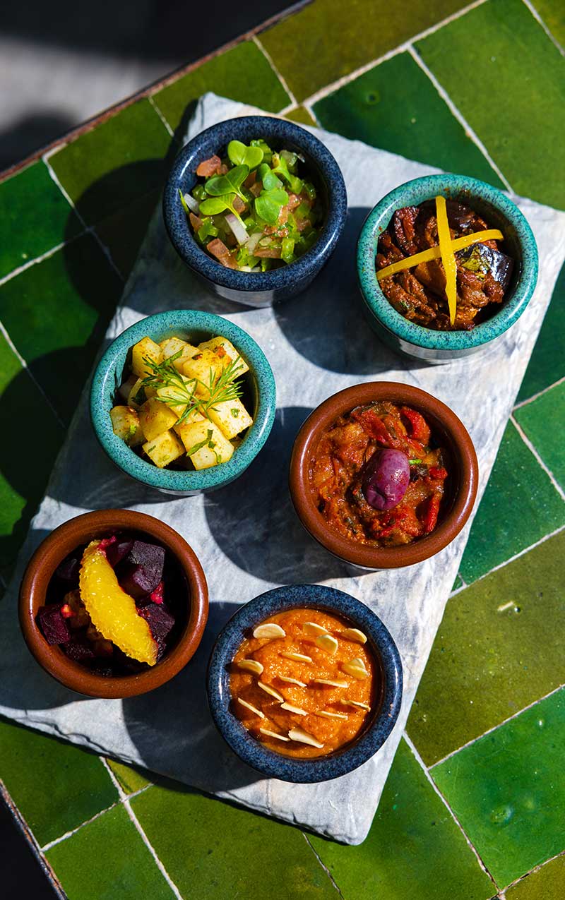 Every dish tells the story of Marrakech—from the spice-laden souks below to the star-filled sky above. Our signature dishes blend time-honored Moroccan techniques with seasonal ingredients sourced from local farms and the Atlas Mountains.